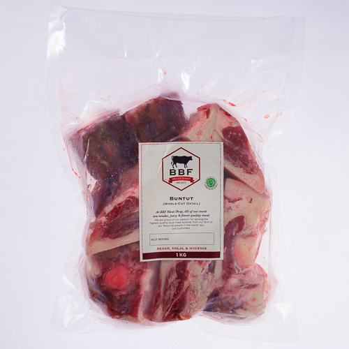 Buntut sapi sudah dipotong dengan ukuran 2-3 cm. Buntut sapi sangat populer untuk dimasak jadi sop buntut ataupun buntut bakar.